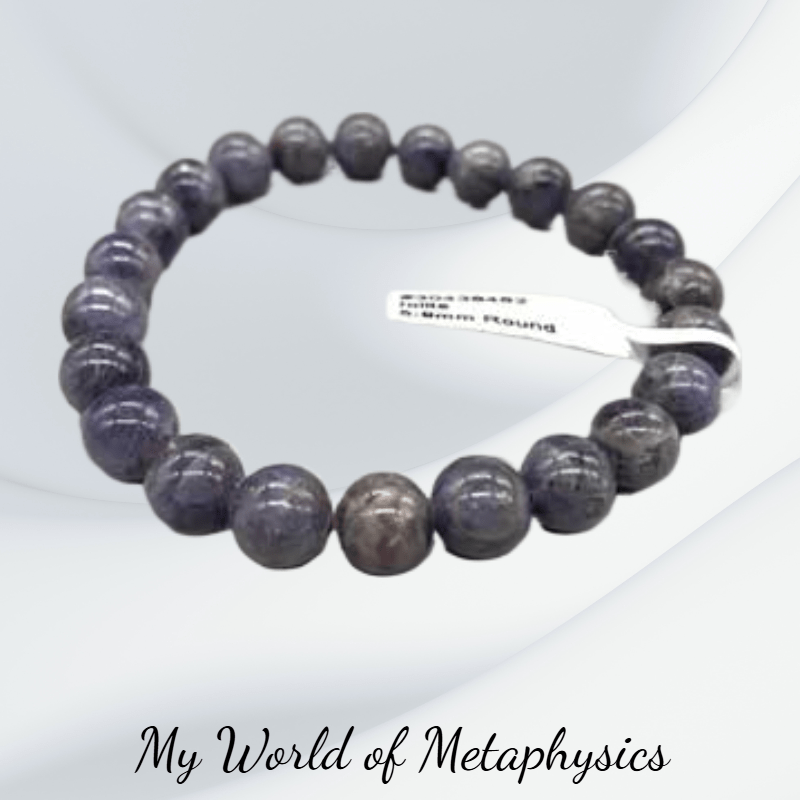 This beaded Iolite bracelet features natural stone beads ranging from 5–9mm for a unique look. Iolite, also known as “Water Sapphire,” is a powerful stone of vision and clarity. It helps you view situations from all angles and restores inner balance. Iolite may also assist with motivation, focus, and overcoming disorganization or distraction. A stunning bracelet that combines beauty with deep spiritual meaning.