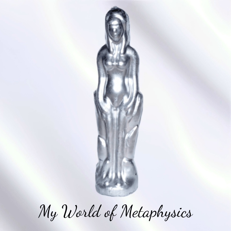 This Silver Female Candle is molded in the shape of a woman and is perfect for rituals focused on wealth, glamour, grace, and sophistication. Etch the name of the person it represents onto the chest to personalize your spellwork. Use with your favorite anointing oil to enhance your intentions. Candle may require leveling to stand straight. Sizes, shapes, and colors may vary slightly. Measures approximately 7″ x 1 3/4″.